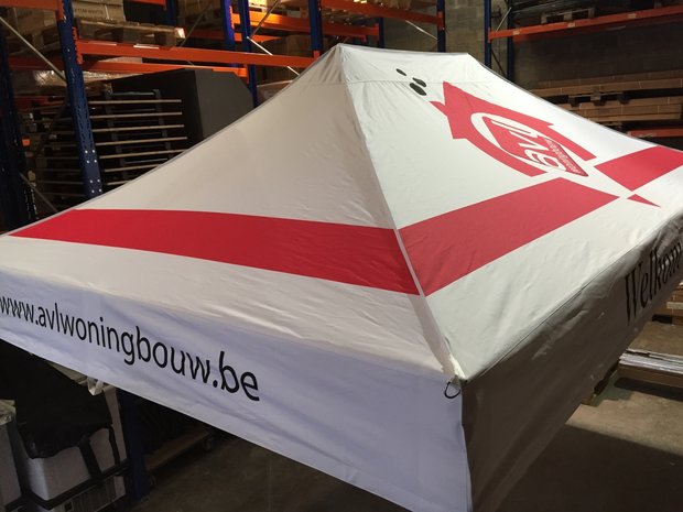 vouwtent 4x4 aluminium frame met polyester dakzeil vouwtent 3x3 wit vouwtent 3x3 aluminium frame vouwtent bescherming contactpunten tussen zeil en frame vouwtent blokkeersysteem duurzame trekpin vouwtent vouwtent dak en boord bedrukt 4 kanten vouwtent 3x3